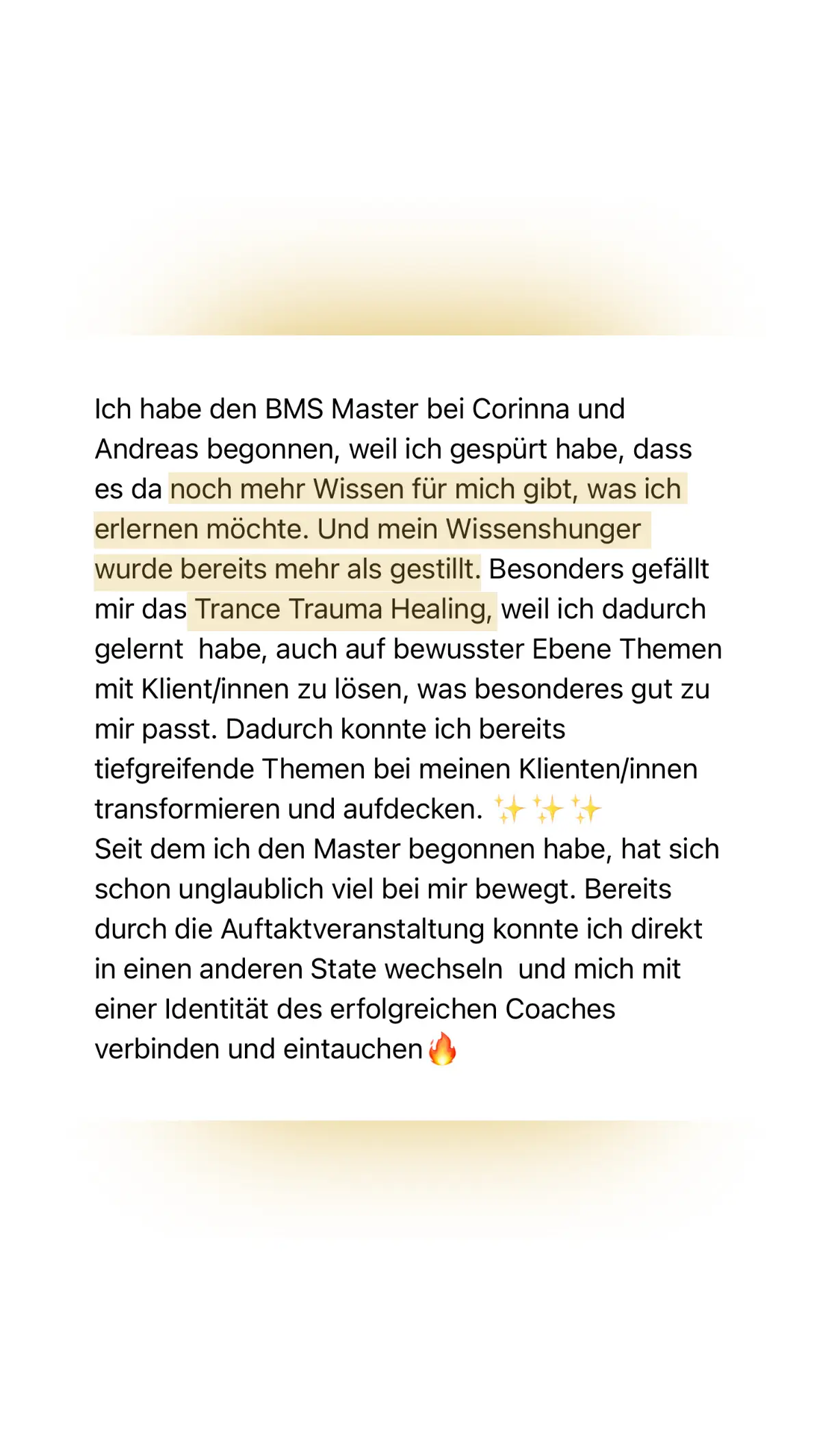 Kombiniert mit deiner Selbsterfahrung in den Modulen und Corinna’s Healing Sessions wirst du in der Lage sein dadurch noch tiefere Themen zu lösen.